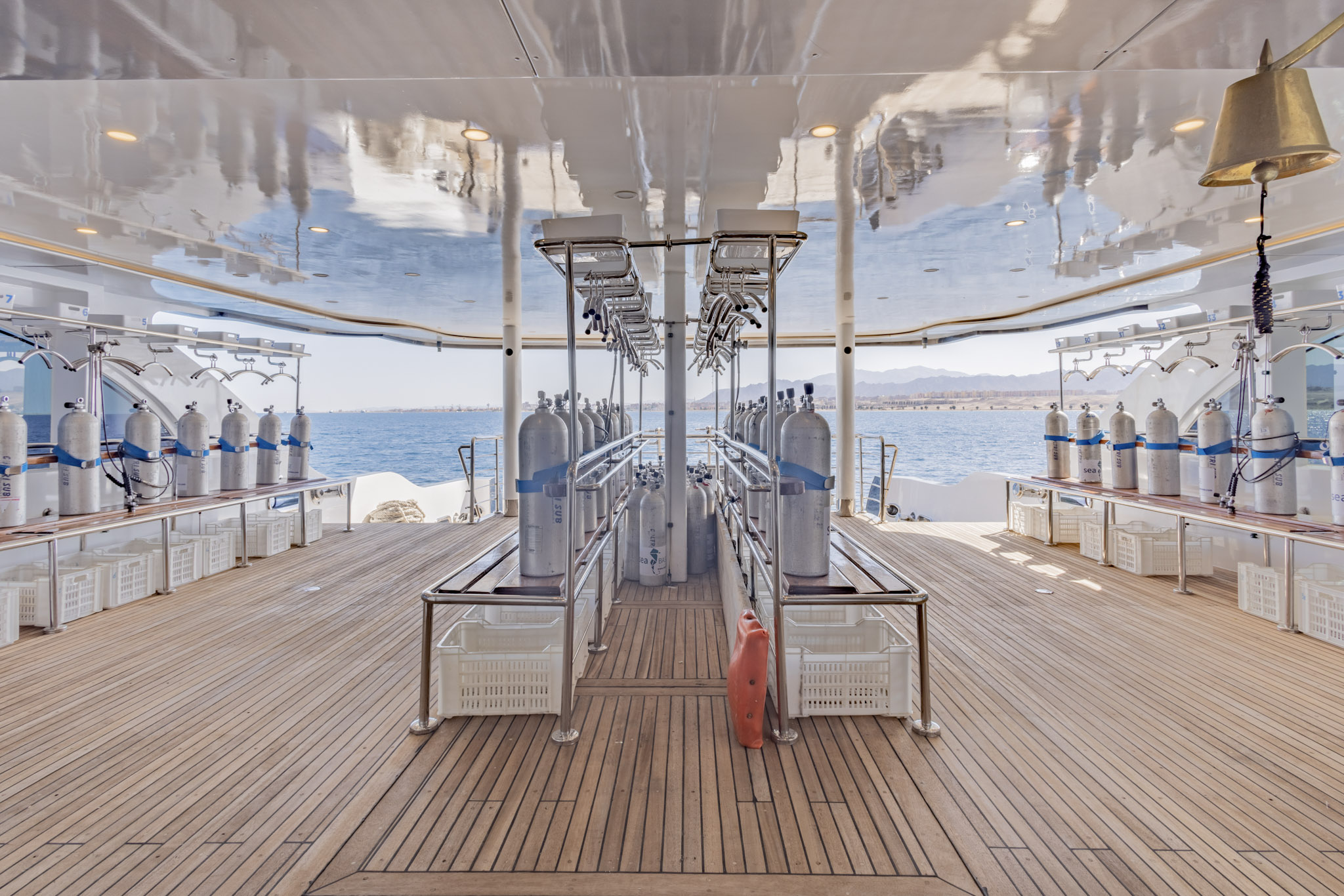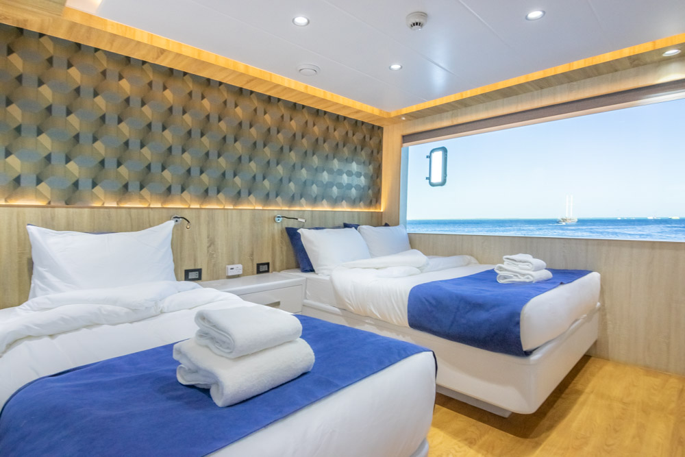 Arrivés devant le Volantis, le joyau tout juste sorti des chantiers de Safaga, impossible de ne pas être ébloui par son allure unique avec sa coque sombre. Vos bagages seront pris en charge et amenés à bord du yacht, sur son premier pont.